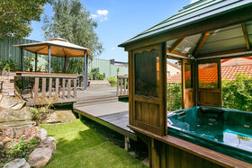 Venture outside and you have a fully covered entertaining area, a manicured yard with a gazebo, and a unique covered spa area. There's also a massive front deck that takes in this lofty location's valley views. Also a garage with drive-through and internal access.